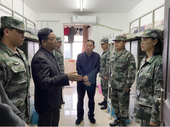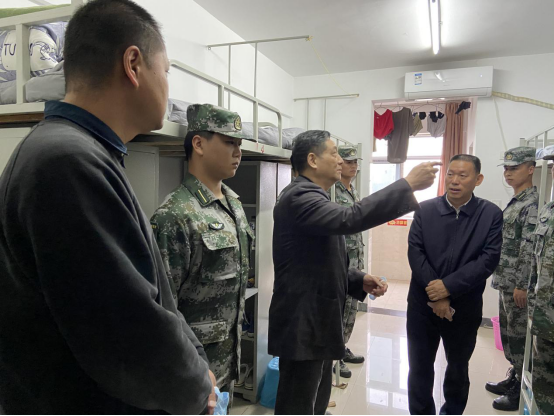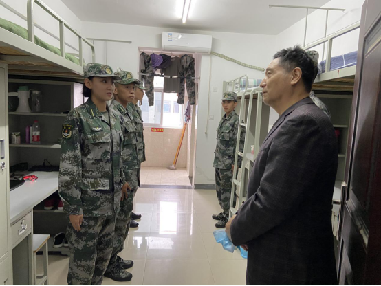 10月15日中午,刘可风校长、赵学迅副书记在学生处曹灵海处长、人武部负责人高翔、学校办公室武凌副主任的陪同下,到宿舍慰问军训教官。刘可风校长对教官们的辛勤付出给予了充分肯定,向大家表示由衷的感谢。