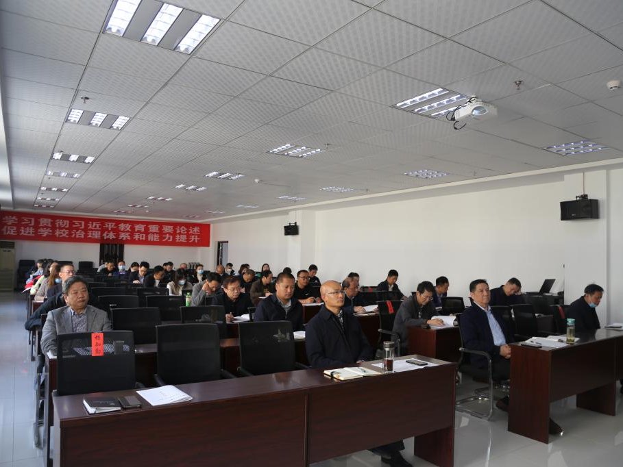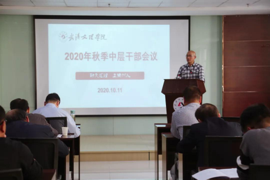 2020年10月11日,av網站召开中层干部会,传达学习习近平总书记教育重要论述讲义,部署本学期学校重点工作。董事长袁戴名、校长刘可风、党委书记杨知勤、副校长陈建华、党委副书记赵学迅等全体学校领导班子成员在行政楼811会议室出席会议。全体中层干部和各党总(支)书记参会。会议由党委书记杨知勤主持。