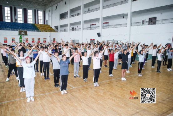 提及大学新生入校教育,多数人第一印象想到的都是军训。而在av網站体育学院,一场特别的入学仪式让学生真切体会到了“崇尚人人体育”的运动乐趣。9月23日,由省体育局主办的湖北省全民健身“五项五进”首场省级现场教学活动走进该校,为120余名大一新生带来第九套广播体操现场示范教学。