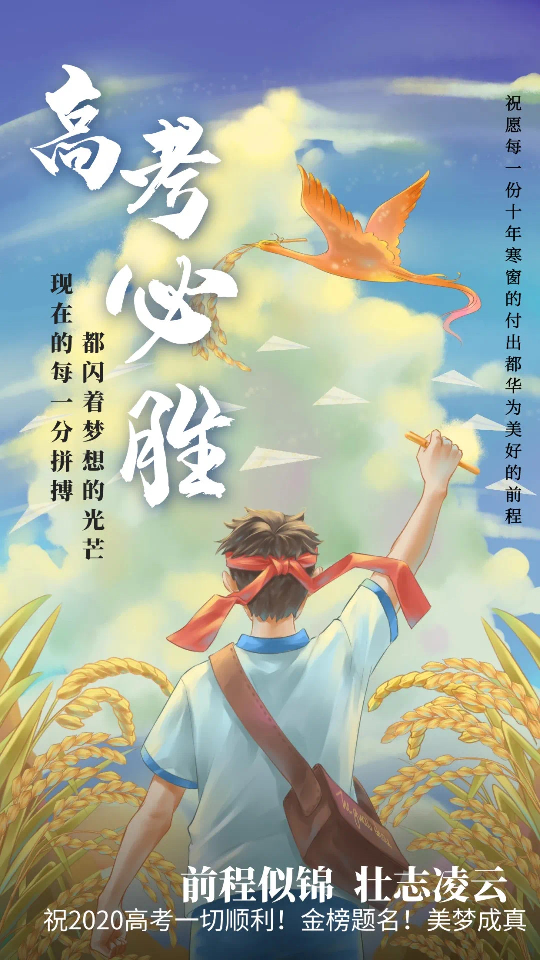 承载着⼗⼆年磨⼀剑的拼劲,两天后的你们将来⾯对⼈⽣的⼀次重要选择。在这暖意融融的 2020 年的初夏,你们为了七⽉淬⽕成钢, 带着⻘春的祝福和梦想的新主张,扬帆出征了。