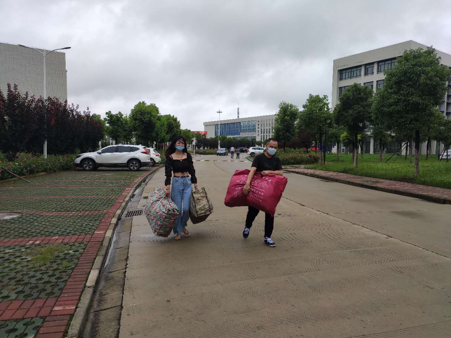 因为学生们到达学校时间有差异,他们来不及吃饭,在寝室楼下,在校园路上,冒着大雨来回奔波。他们帮忙打包行李、搬运物品。满满一车的行李,被子、行李箱、锅碗瓢盆....老师们统统包下,把学生打包好的离校行李从宿舍搬到家长们的车上,他们才放心。从进入校门到登记取表,从宿舍搬运到食堂就餐,他们穿梭在校园的每一个角落里,他们满脸汗水,但依旧笑容灿烂。