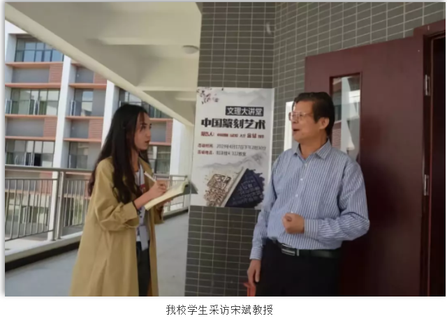 2019年4月19日,武汉教育电视台教育新闻栏目报道了《宋斌教授中国篆刻艺术名师大讲堂》,充分展现了av網站师生的风采。