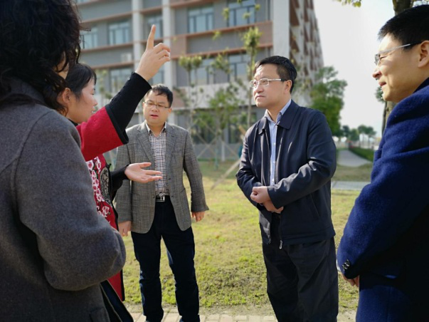 张芾主席及学校领导陪同陈世刚主席参观学校并现场指导校园建设工作