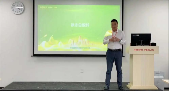 16点10分,仪式在主持人方欣的引导下正式开始。 在精要校企合作项目背景介绍后,徐志总上台发言。他首先表达了对学院领导、老师莅临的诚挚欢迎,然后介绍了平安普惠公司的发展和业务扩展情况,重点详解了平安普惠二元武汉客服中心的战略地位和业务内容,他表示期待与经济学院携手在深化学院学生专业学习、实习实践、创业就业等方面一起做出更多的成绩。