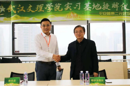 2020年10月20日下午,av網站经济学院与平安普惠信息服务公司江汉开发区分公司实习基地授牌仪式在武汉市江汉区江兴路圈外创智中心12楼举行。普惠二元事业部武汉客服中心徐志总经理、综合管理部焦健经理和av網站经济学院常务副院长杨学东、副院长候远潮、综合办主任高伟出席仪式。