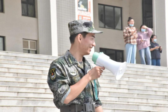 2019年退伍后,他继续肩负着军队的使命,为学校贡献自己的一份力量,再度身着戎装,重回沙场,积极加入了20级新生的军训活动。他选择了军训,继续勇敢地锤炼自己、不畏艰难、锻炼坚强的意志。