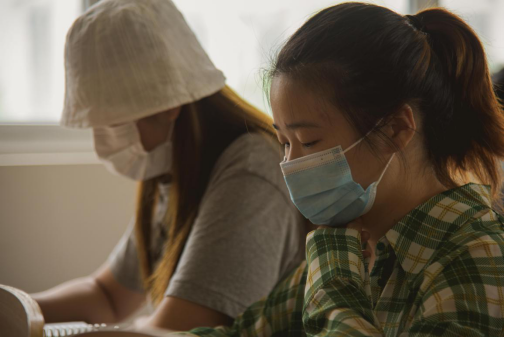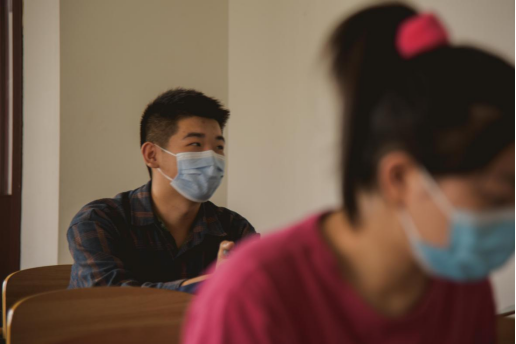 而同学们坚持戴着口罩上课