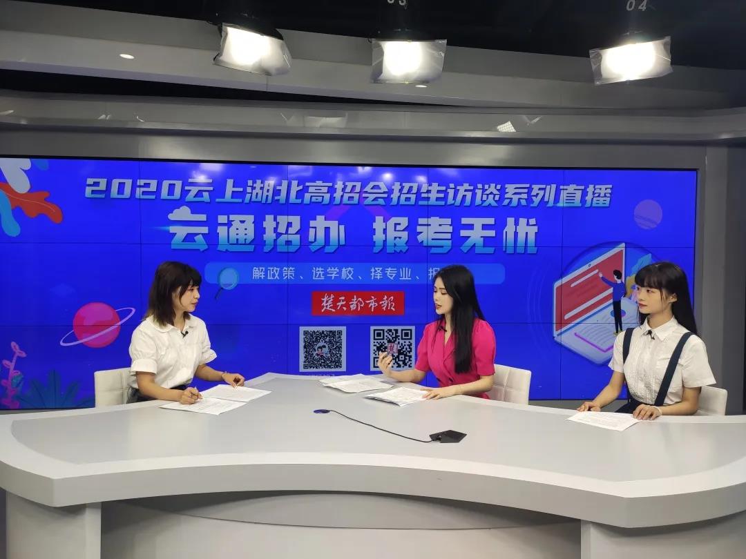 7月24日,我校学前教育专业老师陈相钰和我校16级政法学院法学专业学生刘小雪受楚天都市报邀请,在楚天传媒大厦1楼演播厅,和记者共同解读2020年我校招生政策和办学特色。