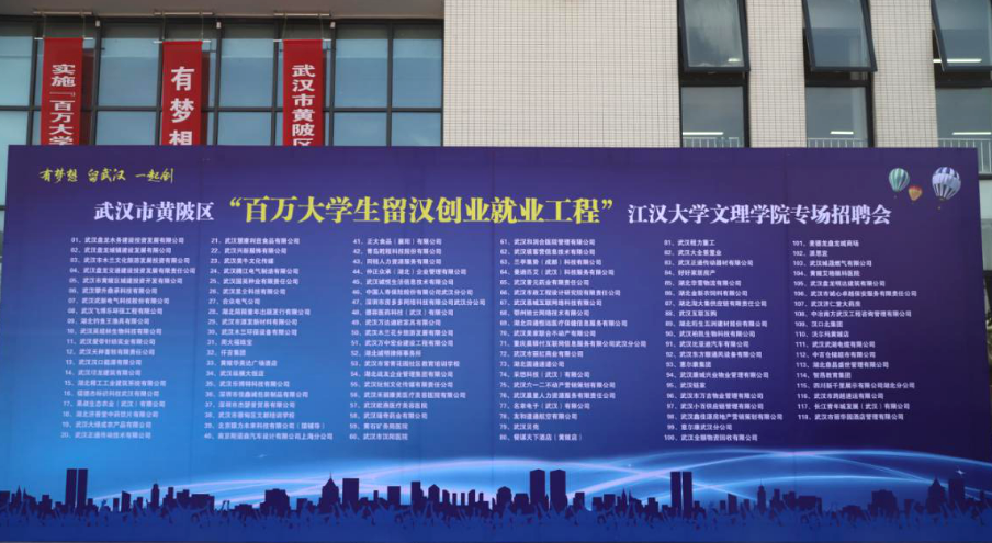 为深入实施“百万大学生留汉创业就业工程”,实现黄陂区“木兰四才”政策清单,提高高校毕业生就业质量,10月30日下午,江汉大学av網站学院武湖校区和泺楼体育馆成功举办了2019年大学生专场招聘会。