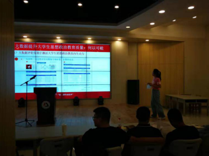 外语系辅导员姚媛媛在培训中为大家分享在华中师范大学培训的重点如何促进大学生思想政治教育的质量提升,其中以大数据提升大学生思想政治教育质量“何以可能、何以可为”来阐述要点。