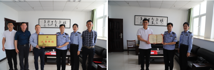2019年5月20日上午10点,武汉市公安局黄陂分局国保大队陈建平队长、乐春芳警官特向我校授予“2018年度平安高校建设优秀单位”荣誉称号,校长助理王明光、学生处处长曹灵海、副处长熊海洋、保卫处副处长徐昆代表我校接受授牌。