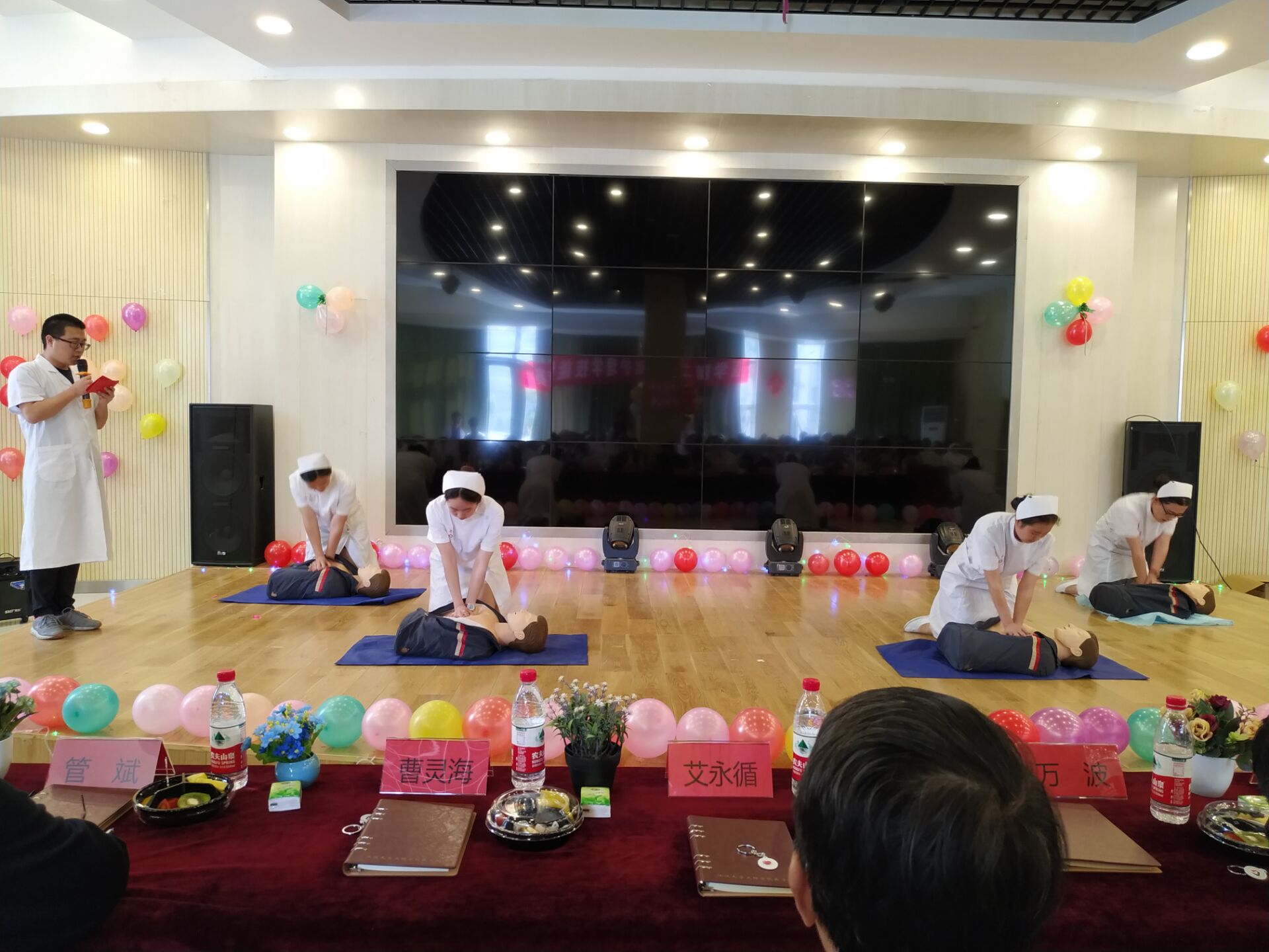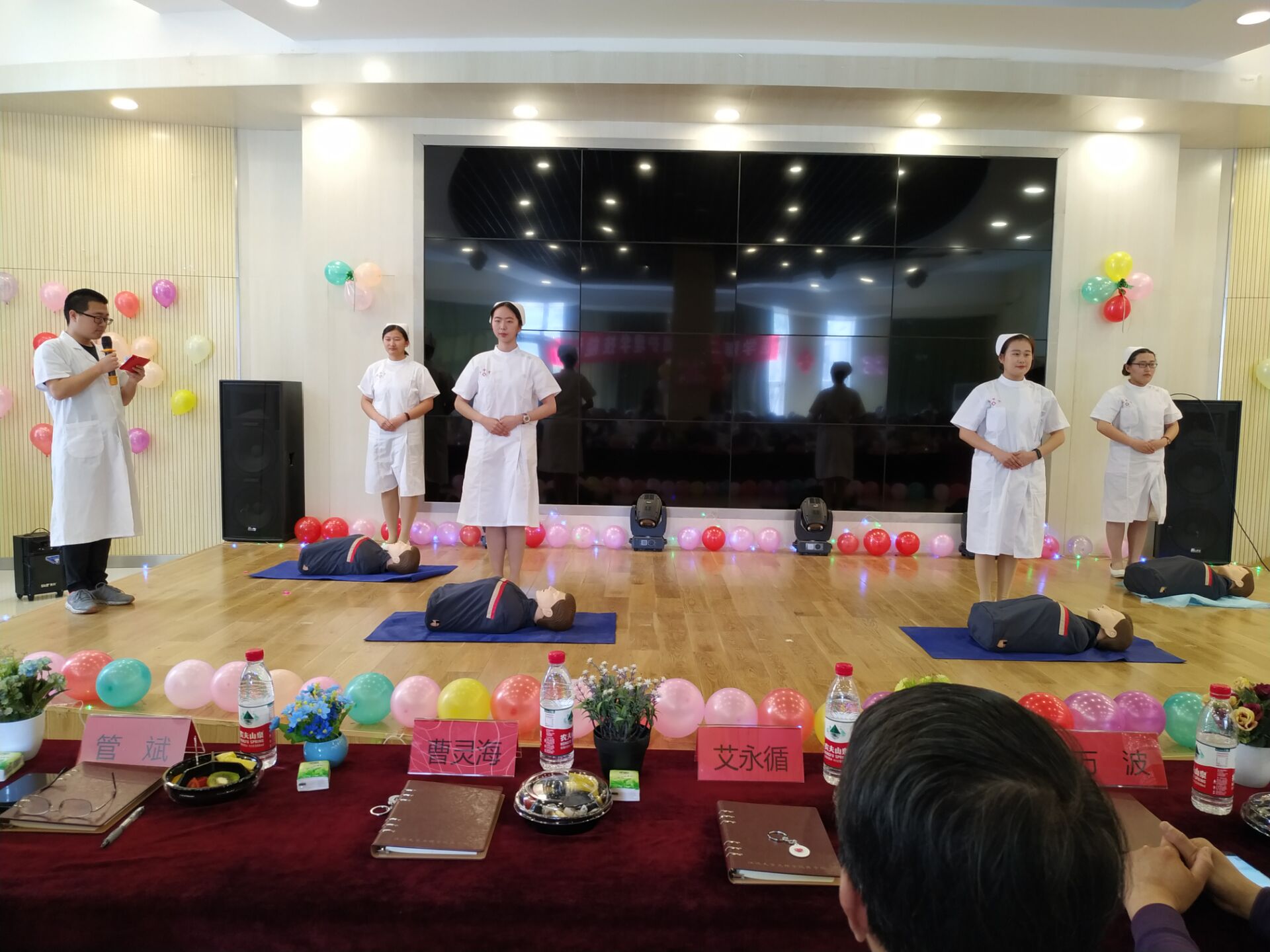 活动的第一项是心肺复苏技能竞赛演示。演示的学生是17级护理班的同学,她们在医学院第二届基础护理技能竞赛中取得了优异的成绩。从她们有条不紊的动作,专业的手法都可以看出她们过硬的专业知识。在医学院第二届基础护理技能竞赛中,获得一等奖的是罗秀芳同学,两个二等奖分别是刘璇同学、吴弘同学,三个三等奖分别是丁红同学、许菁同学和许艺玲同学。此外,还有六名同学获得了优秀奖,她们分别是:荣晴梦、万仟、王艳、刘志会、程志豪和刘后萍同学。