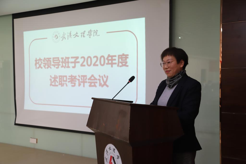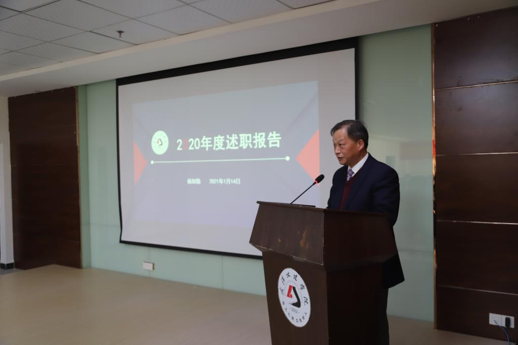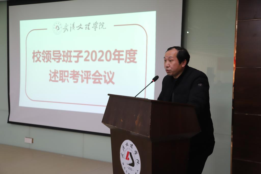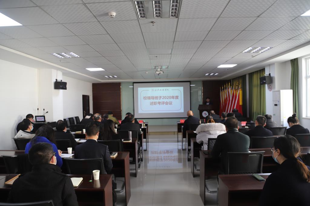 2021年1月14日13点30分,学校在行政楼811会议室召开了2020年度校领导班子述职大会。出席会议的有武汉和润联合体考核小组、学校全体校领导,各学院和职能部门负责人等近30人。会议由考核小组负责人、武汉和润联合体姜琼委员主持。