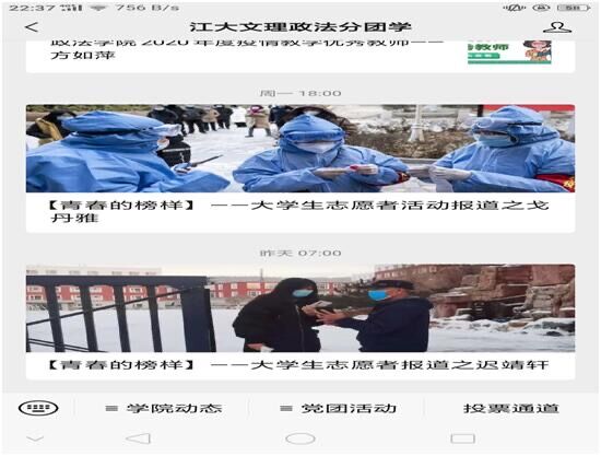 在第三单元,通过学院组织的一系列主题班会活动,同学们深受感染,不仅有积极投身于家乡的抗疫志愿者活动,也有参加社会公益实践活动。即使在严寒的冬季,他们仍然坚持在抗疫志愿者一线,给同学们上一堂“耐人寻味”的“必修课”。