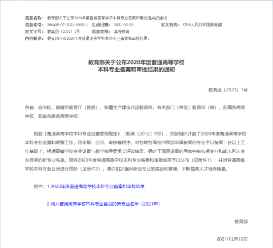 学校高度重视学科专业结构优化调整和内涵建设,主动适应地方经济社会发展的需求,依托原有学科优势,按照学校办学定位和发展规划,通过教学单位申报、专家论证、校内公示、材料上报等环节,完成了2020年度新增本科专业的申报工作。