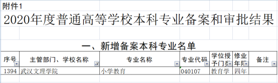 近日,教育部发布《关于公布2020年度普通高等学校本科专业备案和审批结果的通知》(教高函[2021]1号),我校申报的“小学教育”(专业代码:040107)本科专业成功获批。至此,我校本科专业数量增至42个。