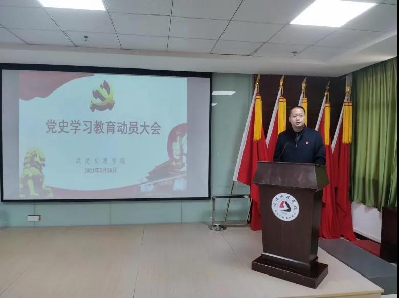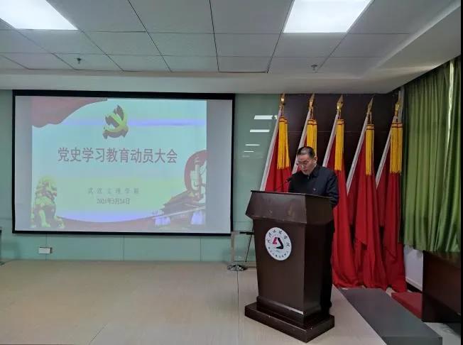 3月24日,学校在行政楼811会议室召开党史学习教育动员大会,认真学习贯彻习近平总书记重要讲话精神;按照教育部党组和武汉市委的部署要求,在全校开展党史学习教育总动员。全体校党委委员、各学院党总支(支部)书记、委员、各机关党支部书记、委员参加了会议,校党委书记杨知勤在会上作动员讲话。会议由校党委副书记赵学迅主持。