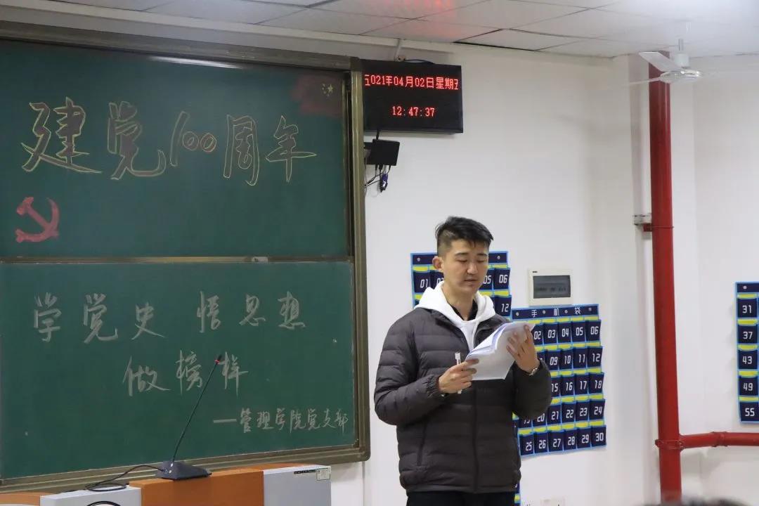提起王梦成,管理学院党总支书记徐永辉老师说:“他做事从不拖拉,在进行植树节义务劳动教育的时候,他能够军事化的管理班级队伍,同学们也都很服他。所以,这次建党100周年的党史学习,我们选他带着同学们学习,大家参与党史学习教育的积极性都非常高。”
