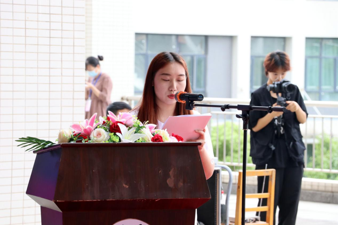 毕业生代表17级视觉传达设计1班李敏发言。她回顾了四年大学生涯,表达了对学院和团队伙伴的感谢,并祝愿全体毕业生未来可期。