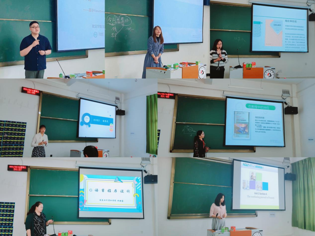 本次决赛分三个小组进行,评委由教学指导委员会成员组成。各组评委从参赛选手的说课、课堂教学展示和现场答辩三方面,按照评测规则进行评分。教务处和人事处组织了全校青年教师进行了现场观摩。