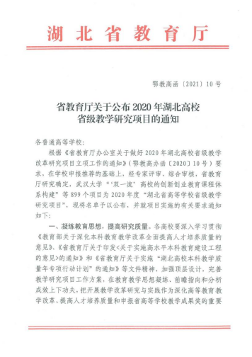 喜报!我校2项课题获2020年湖北高校省级教学项目立项