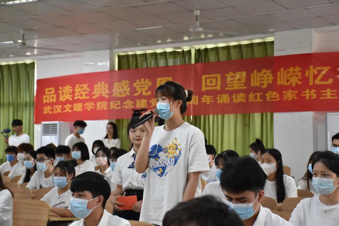 出席本次活动的有党委书记杨知勤、副书记赵学迅,宣讲人代表和经济学院党总支党员学习小组成员。活动以品学兼优的学生代表诵读红色家书形式来回顾中国共产党百年艰辛而辉煌的风雨历程,号召广大师生学家书、诵家书、议家书、悟家书、写家书,用“家书”的情怀谱写新时代中国特色社会主义新篇章。