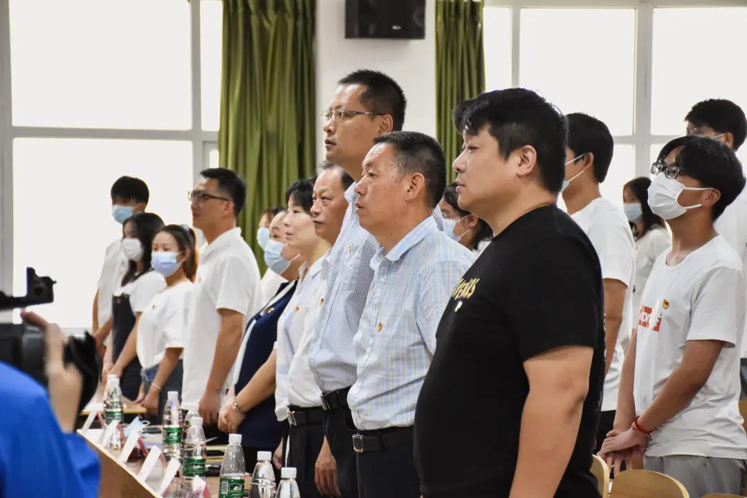 活动最后,国旗护卫队请出党旗,全体人员以重温经典歌曲《没有共产党就没有新中国》完美落幕。