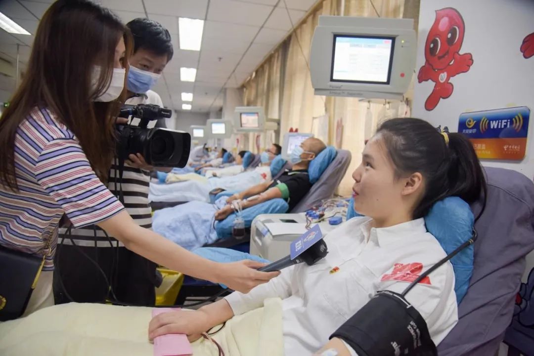 现场的多家媒体对她首次参加献血,献礼建党一百周年的行动非常关注,全程对她进行了跟拍记录与采访。