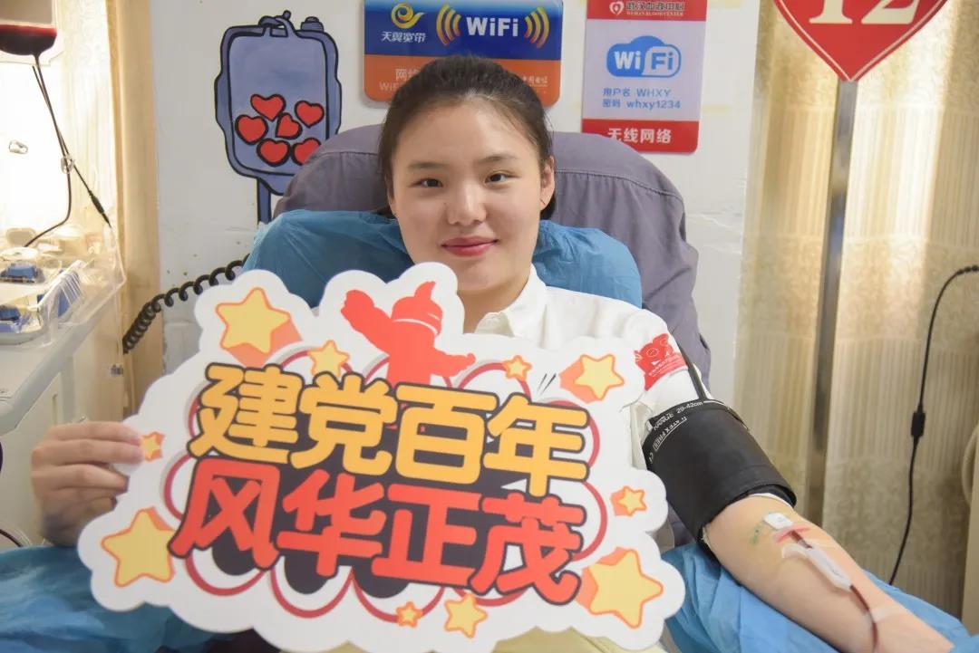 6月25日,武汉血液中心大厅举办了“百次献血者致敬建党一百周年”的献血活动。av網站人文艺术学院2018级预备党员同学高宁霏,受邀参加了本次活动,作为从“零”到“一”的首次献血者上台发表演讲并完成了她第一次无偿成分献血。