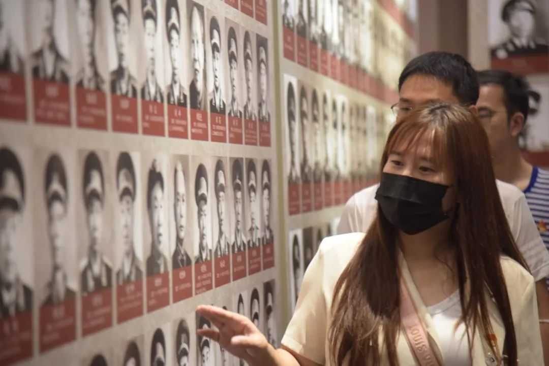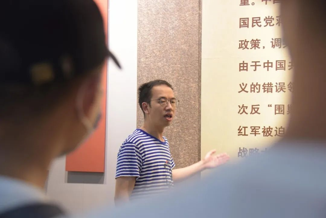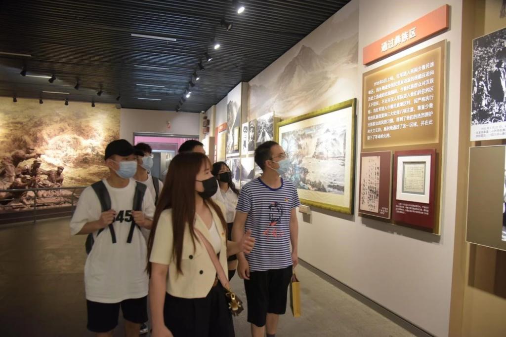 参馆途中,一副井冈山时期的毛主席照片让青年学生党员谢昊男驻足良久,从部队退伍将近两年的他,一直铭记着毛泽东同志是人民军队的奠基人和灵魂思想的缔造者。站在这红色氛围中,他举起右手,庄严地向毛泽东同志的照片行了一个标准的军礼。在陈列馆的第二展厅里,校党委委员耿湘同志带领着同学们参观了1935年遵义期间的革命先烈光辉足迹,她强调:“我们永远不能忘记历史,不能忘记这些革命先烈为我们的革命胜利作出的奉献,牢记使命,不忘初心,走好新时代的长征路。”