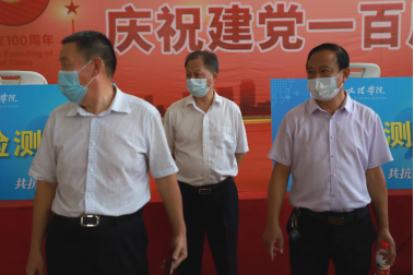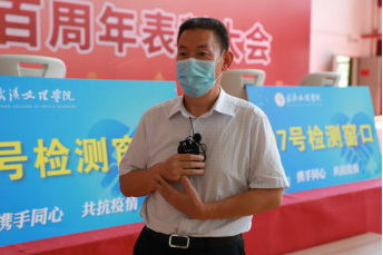 校党委书记杨知勤、学生处处长曹灵海在体育馆现场办公,了解工作开展情况,并向所有医护人员和志愿者师生们表示慰问,希望大家在做好自我保护的同时努力工作,齐心协力完成好全员检测。
