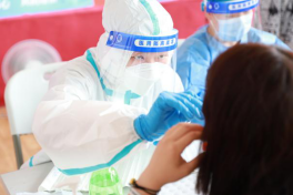 “头抬起来,低声说‘啊’”,医务人员对每一位来检测的人员说道。打开包装,取出检测棒,为师生检测,然后放入样本盒......一整天下来,医务人员一直重复着这几个动作。炎炎夏日,他们身穿密不透风的防护服,戴防护镜和口罩,头上的汗顺着脸颊往下淌,但仍然一丝不苟地继续工作。