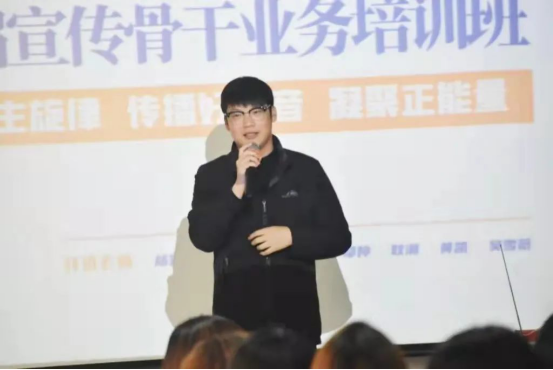 孟飞飞老师对校宣传部的邀约表示感谢,举例讲述了新媒体当前的发展态势。他表示,“机遇与挑战是并存的,新媒体的迅猛发展掀起传媒产业的一轮新浪潮,与传统媒体相比,新媒体的出现给予了普通民众一个自我展示的平台,在这个人人都有麦克风的时代,我们要在抓住机遇的同时,做好应对困难和挑战的准备。”