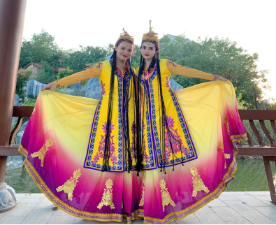 古丽乃宰尔·吐尔洪和古丽妮尕尔·麦麦提敏表演新疆民族舞蹈