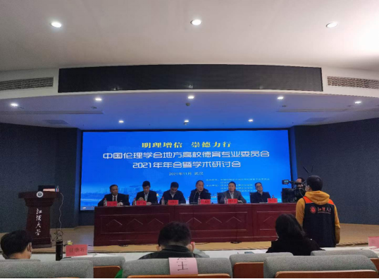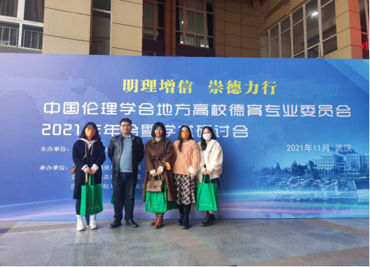 2021年11月20日,我校思想政治理论课部教师代表在校党委书记杨知勤、副书记赵学迅的带领下,受邀赴江汉大学参加中国伦理学会地方高校德育专业委员会2021年年会暨学术研讨会。