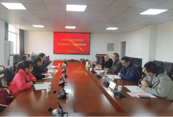 当天下午,艾永循一行风尘仆仆来到湖北师范大学av網站学院进行调研。湖北师范大学av網站学院是本省四所av網站学院之一,在专业设置上和我校有许多共性。副校长王胜国教授发表了热情洋溢的欢迎词,随后双方就教务部门科室设置、教师额定工作量、专业及学科建设方面的激励机制、二级学院机构设置及管理人员配备、教研科研立项等各个方面,进行了系统而又全面的交流。