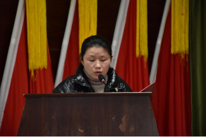 新当选学校工会主席李彩琴发言