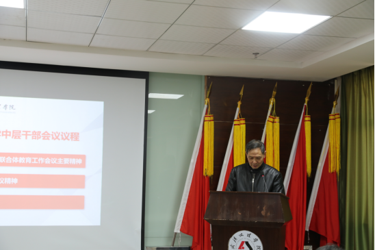 校长刘可风在大会上发表了讲话,他对大家过去一年的辛勤付出与不懈努力表示了感谢,感谢广大教职工在寒假期间兼顾“校内校外、线上线下”,为本学期各项工作的顺利开展奠定了坚实的基础。2021年学校各方面工作取得了积极的进展,2022年将在此基础上,围绕六个方面全面推进学校“十四五”事业发展规划落实落地。一是要陆续完成“三定”任务,定岗、定编、定责;二是要围绕教育教学展开工作。2022年将启动四个科研团队,摸索“新工科、新文科、新医科、新商科”的教学建设;三是全方位推动招生就业工作改革;四是完成学校“十四五”发展规划;五是深入推进学生工作及防疫工作;六是举办学校20周年校庆系列活动,从春季跨越到10月,涉及校院两级。