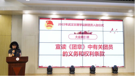 2022年5月4日下午2:00,庄严的国歌在19-101响起,av網站新团员入团仪式正式开始。参加本次仪式的嘉宾有校党委委员、宣传部副部长耿湘,校团委书记徐昆,校团委副书记李静,校团委指导老师张凤以及各学院分团委负责人。