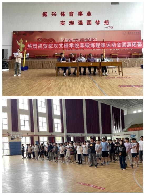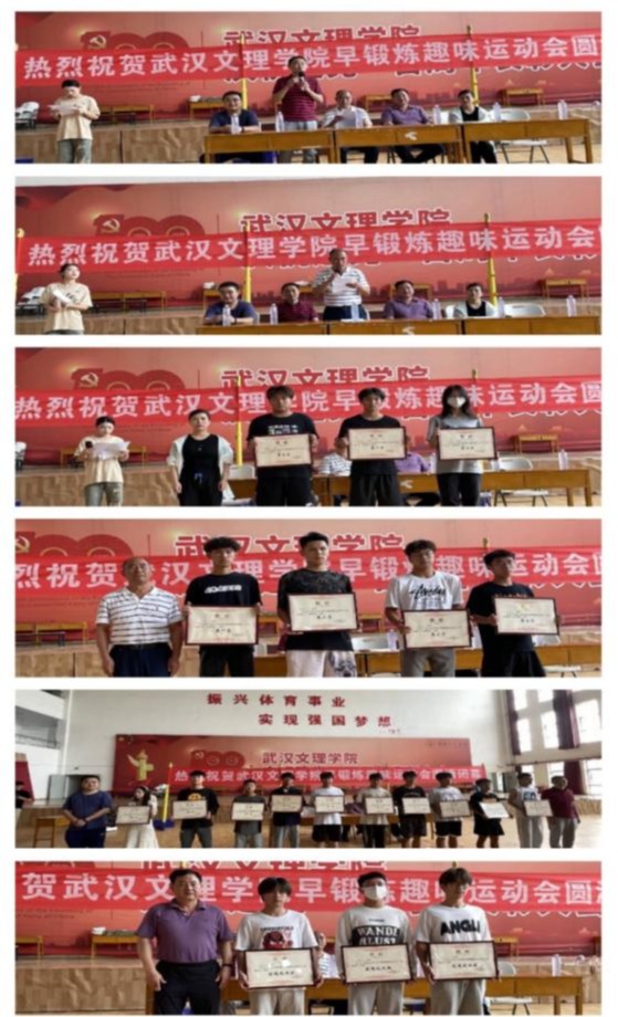 首先,体育学院党总支书记韩玮老师致闭幕辞,他对获奖班级表示热烈的祝贺,同时希望同学们一如既往地支持和参与到早锻炼工作中,他表示体育助教团队今后会在早锻炼中植入更多的趣味游戏,以此来提高同学们的积极性、参与度和认可度,进一步增进同学间的友情和团结协作的意识。随后,学生处高翔老师宣读获奖单位名单,紧接着到场领导老师依次上台为获奖班级颁奖,同时各获奖班级与颁奖嘉宾合影留念。