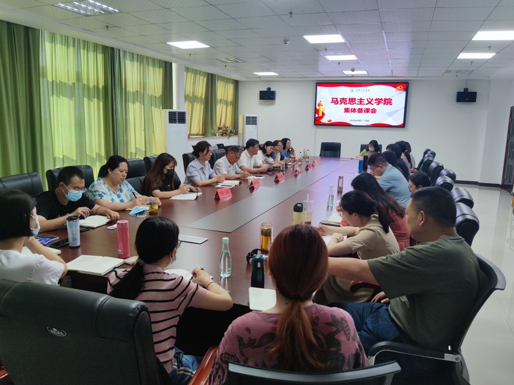 马克思主义学院院长毛传清对本次备课会提了四点要求,一是切实提高新时代思政教师“六要”素质,强化政治建设,打造“信马、爱马、言马”的忠诚队伍。二是切实提高对思政课性质的认识,要从“关键”的角度来创优思路,明确思政课的本质属性,把党交给我们的“责任田”种好。三是切实提高备课的有效性,首先要备教材,要钻研教材、整合教材、拓展教材,根据大纲要求,分析教学重点难点,把教材体系科学地转化这教学体系;其次要备学生,结合学生特点对教材内容重新构思和巧妙安排,进行恰当的梳理、归纳、提炼。然后是备教学设计,寻求最佳教学方法和教学设计。四是切实提高思政课教学技能,从习总书记的“八个统一”着手,在思政课改革创新方面下功夫。