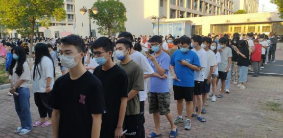 一切工作准备就绪,等同学们一到核酸采集点,志愿者们就开始有条不紊地进行准备工作。在新方案的指导下,全校师生可以选择离寝室最近的核酸采集点,这种新方案不仅减少了聚集扎堆的风险,还大大缩短了同学们排队的时间,提高了医护人员的工作效率。同学们频频称赞新方案能够就近采集核酸,加快了核酸检测速度。早晨8点左右3栋核酸检测点开放,也为教职工提供了便利,使他们能尽快进行核酸检测不耽误工作。