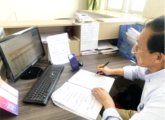 8月31日,吴铁山督导在前往学校的路上接到校园封闭的通知,老党员依旧坚持前方探路,到校后更是迅速与各学院相关教学管理人员联系,第一时间驻扎在线上课堂督导教学。