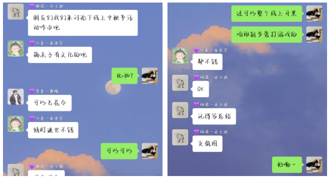 活动开始前,法学5班的班委们在群中积极讨论与研究线上活动如何有趣又温馨的进行,每个人都认真提出自己的建议和想法。