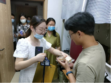 值此佳节,政法学院政法学院教学副院长陈海峰,行政副院长张晓,综合办公室主任谢琦以及19级辅导员谢红炼、20级辅导员韩思慧、21级辅导员胡金成、22级辅导员杨云燕为政法学院全体同学送去了香甜的月饼,祝大家中秋节快乐,同学们齐声回应老师“双节快乐”!