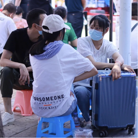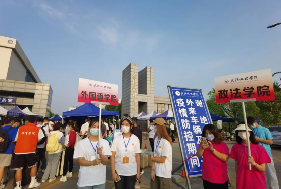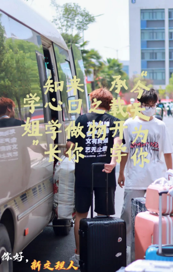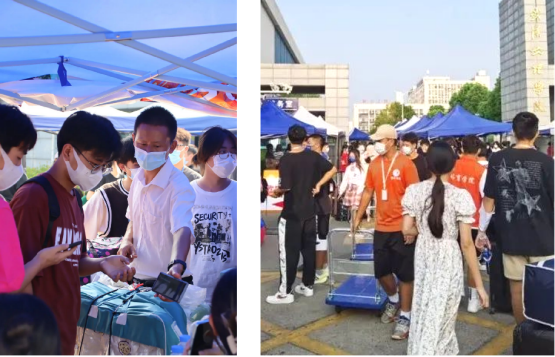 由于学校所在地还处于交通管控时期,周边公交停运,外来车辆不能进校,今年学校组织志愿者随摆渡车到地铁站迎接新生,校门口设立各学院接待点,一站式护送新生报到入住。