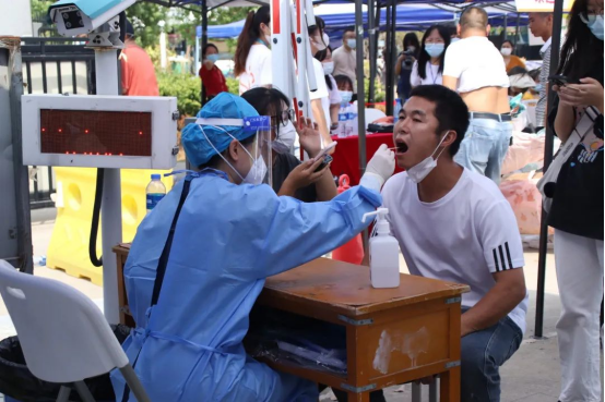 “体温正常,核酸正常。”校门口,大一新生出示绿色健康码、行程码、进校前24小时内核酸检测阴性证明、三天三检报告、并在校门口完成入校前的核酸采样,工作人员对行李进行消毒消杀,设置人脸识别系统以及大数据统计系统,快速完成学生身份验证。科学防护与精心服务相结合,给同学们带来了满满的安全感。