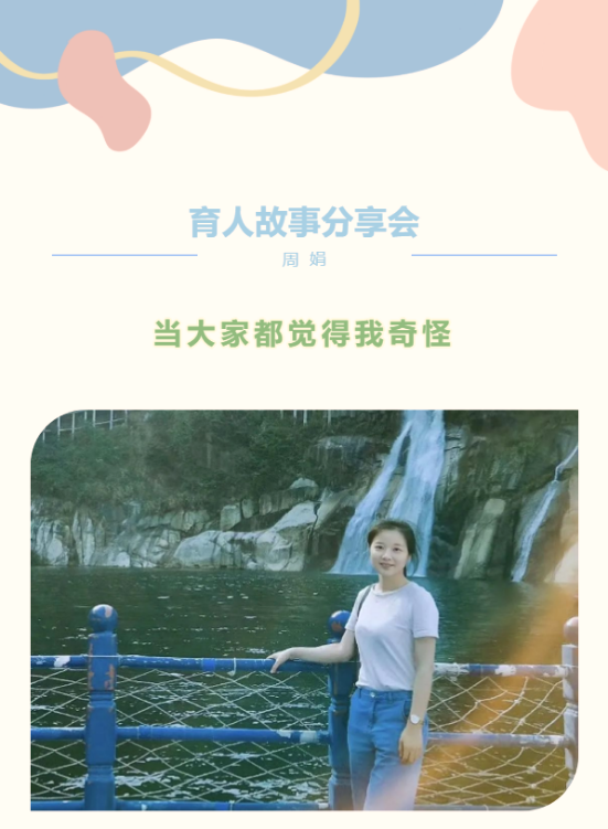 当天分享会结束后,小浩特意跑到我的身边,略带神秘地说:“周老师,谢谢你举办的分享会,我很开心,感觉大家开始接纳我了,同学们现在也不觉得我是一个奇怪的人了!”还没来得及回应,我发现小浩已蹦跳着走到了同学中间。