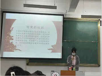 班会中,团支书全刚以生动朴实的语言,回眸了党的光辉历程,回顾建国和改革开放以来发生的翻天覆地变化和取得的伟大成就, 展望美好前景。教育同学要倍加珍惜来之不易的幸福生活,提高民族自尊心和自豪感,进一步发扬以热爱祖国、贡献力量建设祖国为荣的良好风尚。