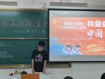 爱国是本分,也是职责,是心之所系、情之所归。2022年9月30日,临近国庆节。21级小学教育一班全体同学在4栋410教室举办了一场爱国主题班会。